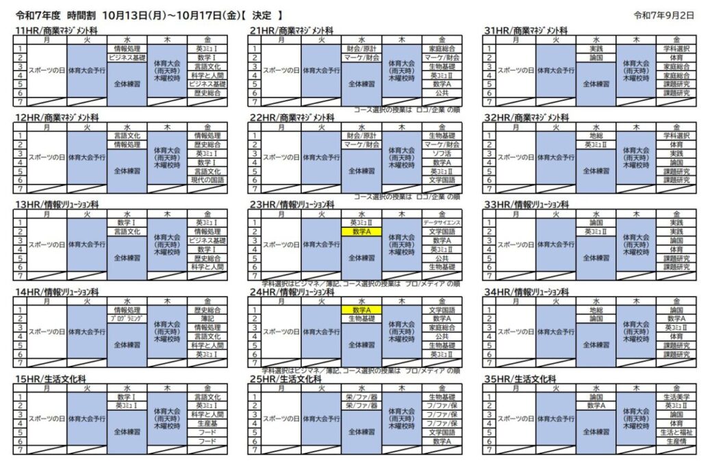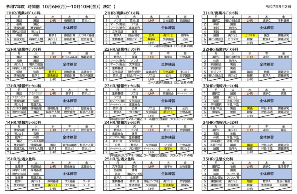 - 10/16(木)体育祭 ※雨天時木曜校時