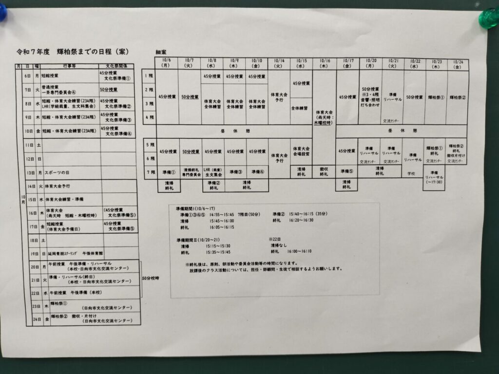 中間テストが終了しました。来週から体育祭(10/16(木))に向けて特編時間割となります。それが終われば23日から輝柏祭(文化祭)です。10月は忙しいですね。
