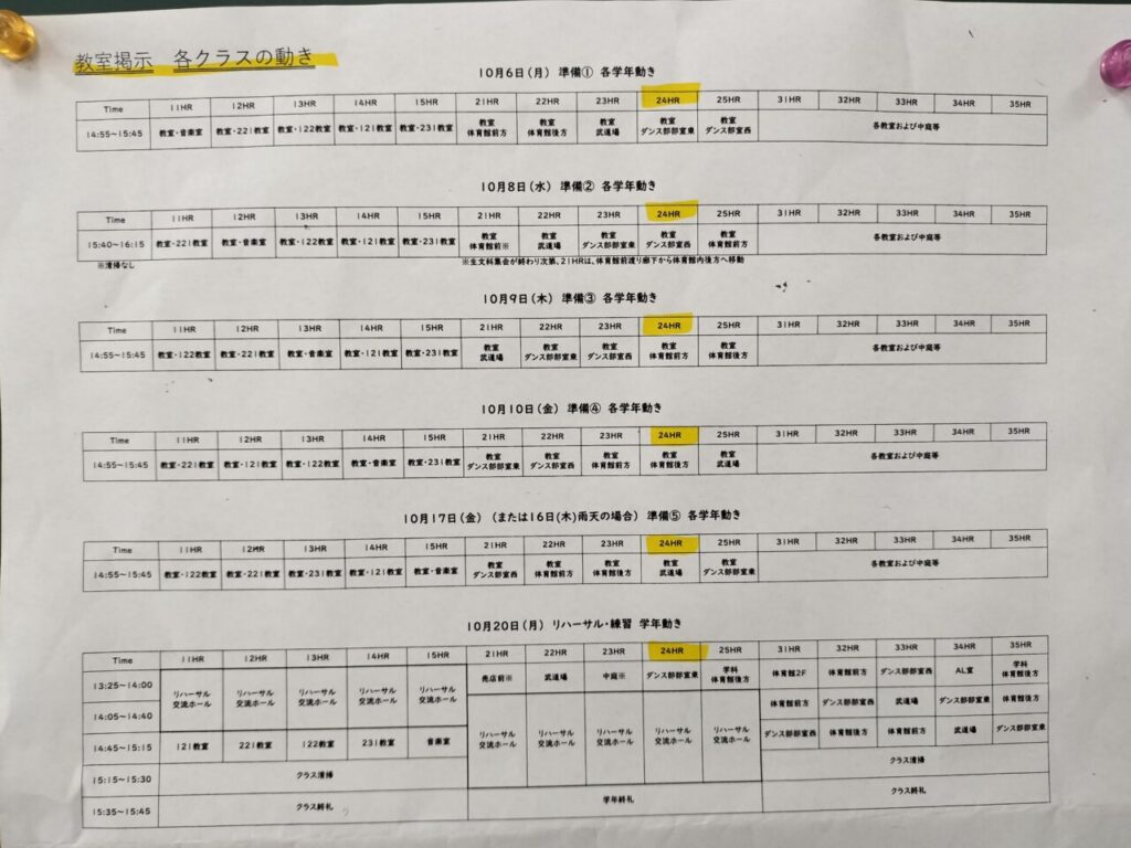 - 10/20(月)輝柏祭準備・リハーサル(学校・文化交流センタ-)