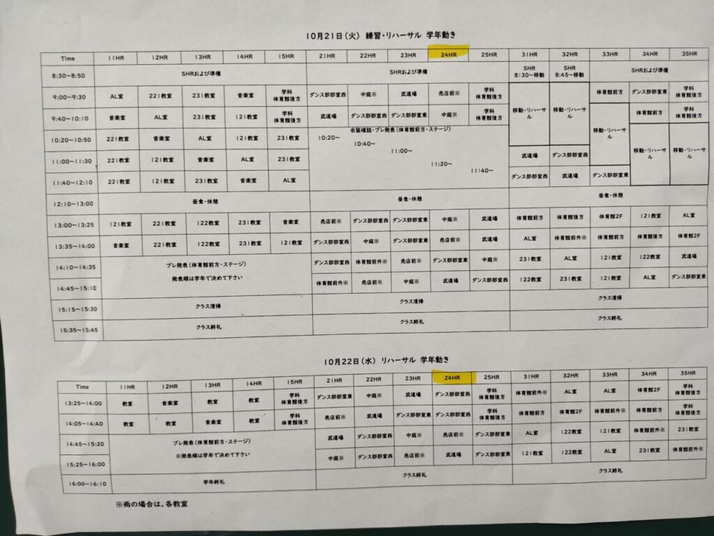 - 10/21(火)輝柏祭準備・リハーサル(学校・文化交流センタ-)