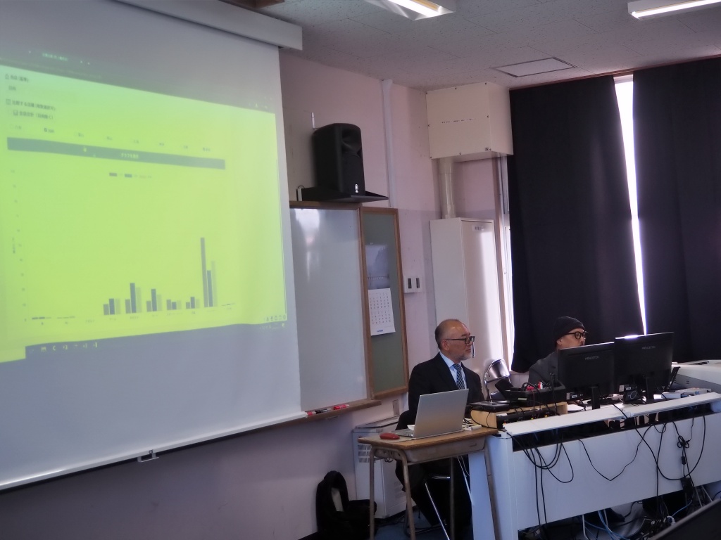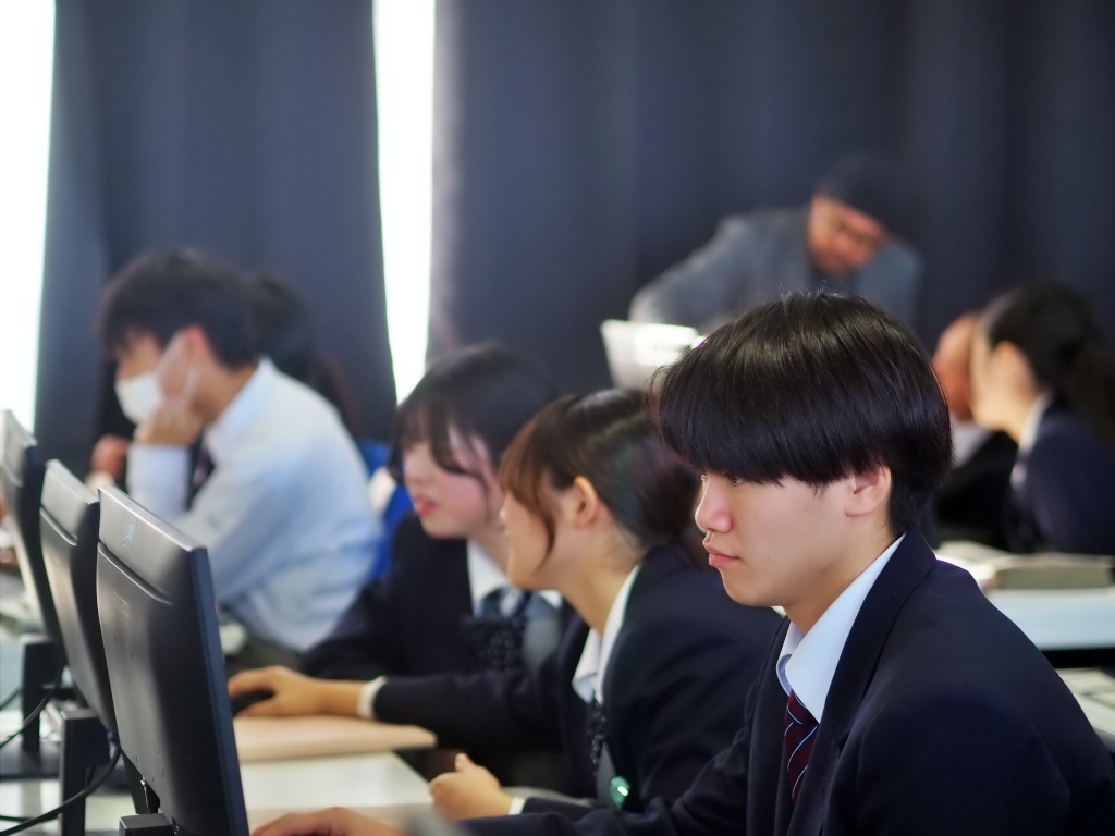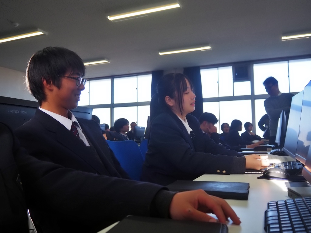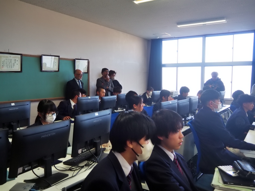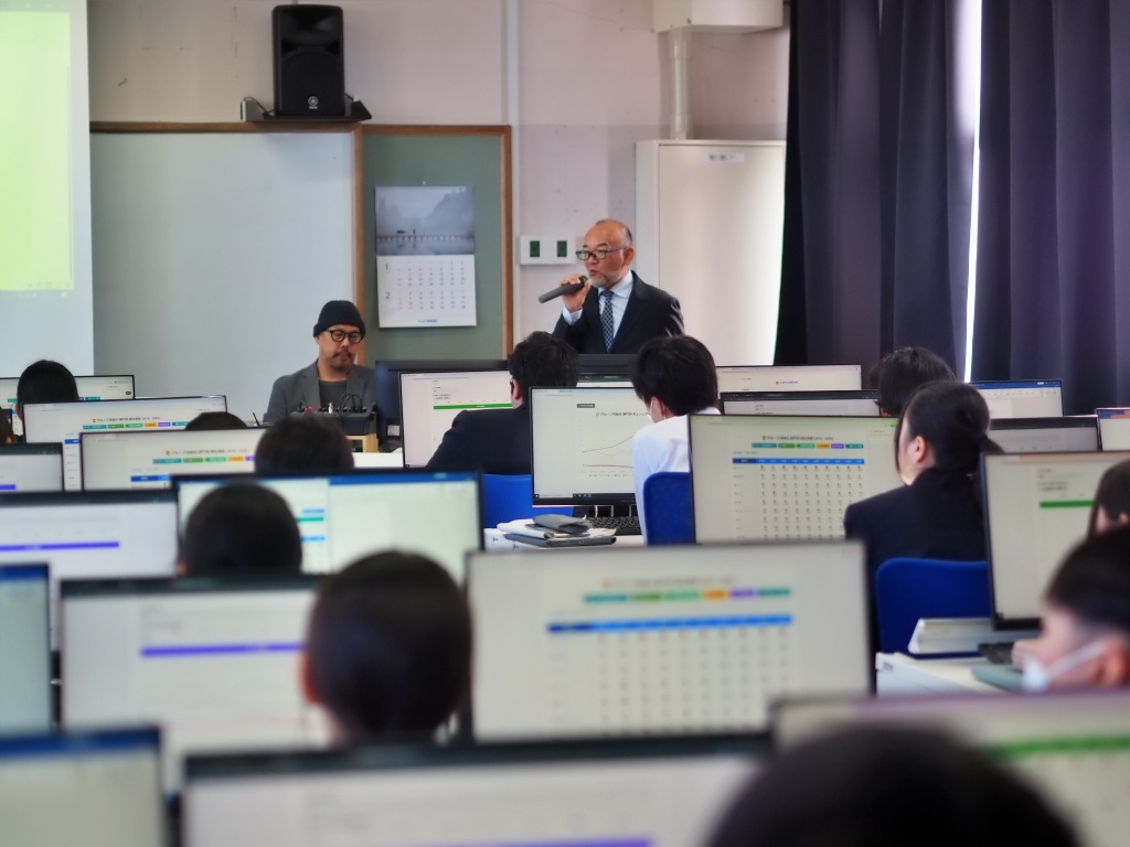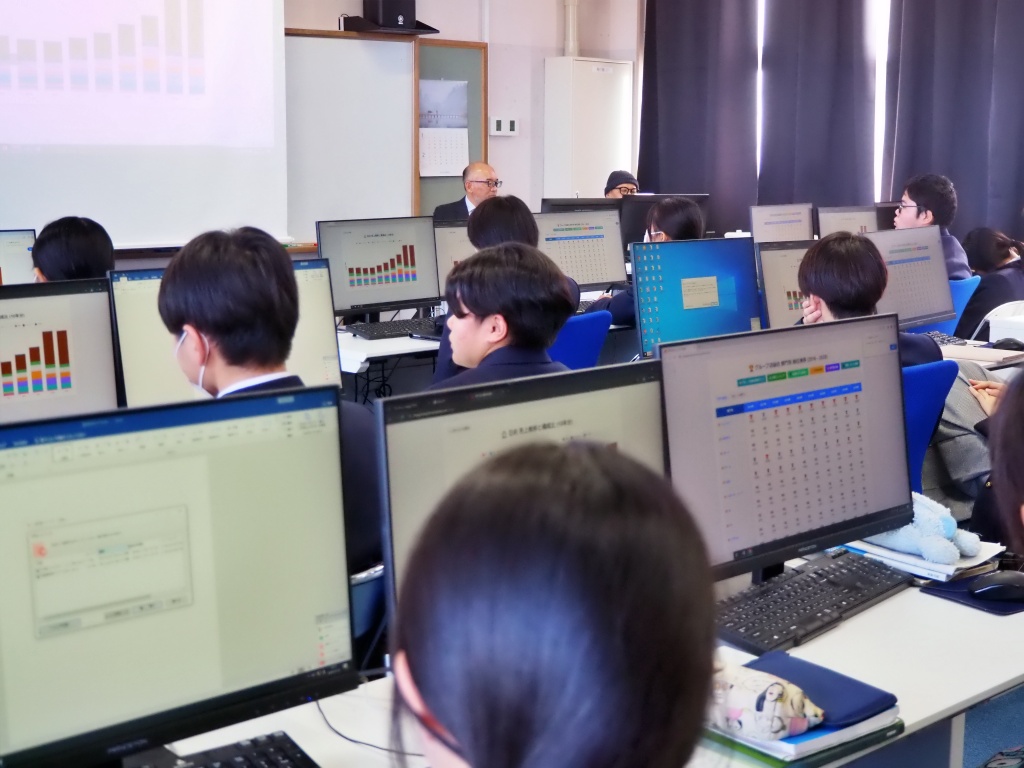 『実際の店舗で得られるデータを活用した経営分析の実例を学ぶとともに、生徒自身がデータから今後の予測を行う体験を通して、データサイエンスへの理解を深める。』という目的のもと、本日3限目に、有限会社悟空(DX学校)より2名の先生にお越しいただいて、データサイエンス講座が2年の情報ソリューション科を対象に行われました。